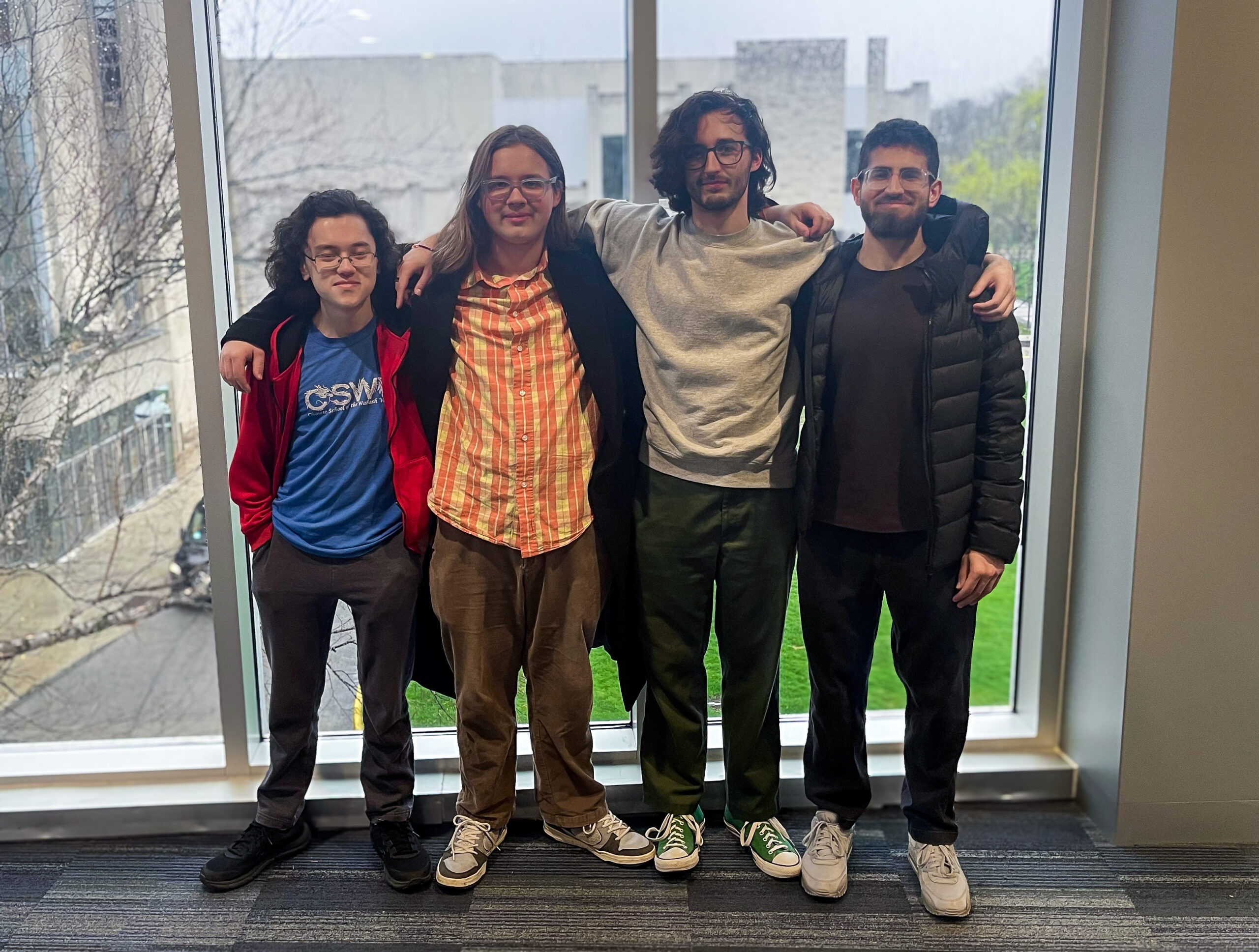 Mia Traverse (soprano saxophone), Aaron Wilson (alto saxophone), Zoe Klotz (tenor saxophone), and Megan Dudenhoeffer (baritone saxophone).